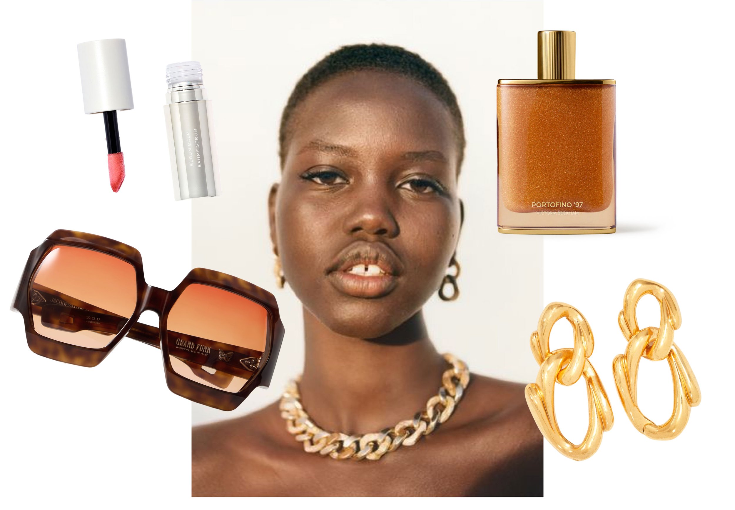 Your essentials: a lustrous glow, statement earrings, and a kiss of something magic