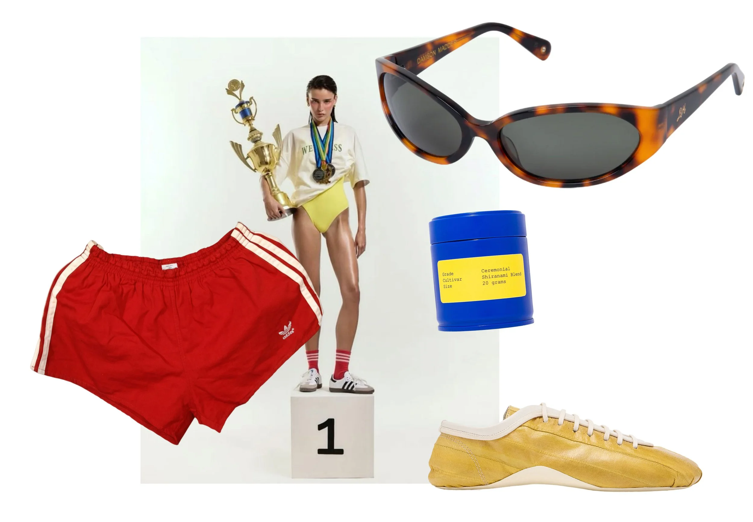 Your essentials: vintage track shorts, designer sneakers, and the gold standard